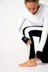 These eco-friendly leggings for women will firm up your figure thanks to their high waist and contrasting stripes . Equipped with several pockets , they allow you to carry everything you need when you run outside or work out indoors. The (self-locking) zipper at the bottom of the leg makes it easy to undress when you come back from a particularly dirty trail.