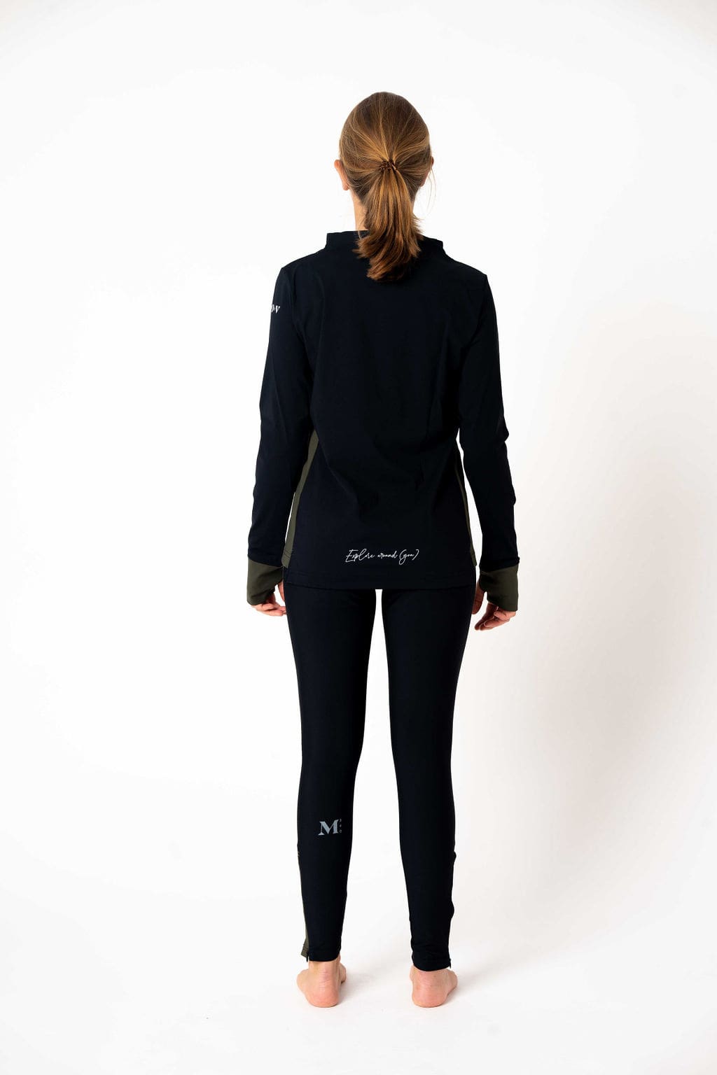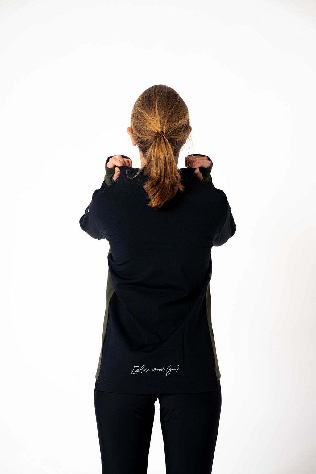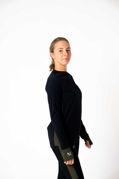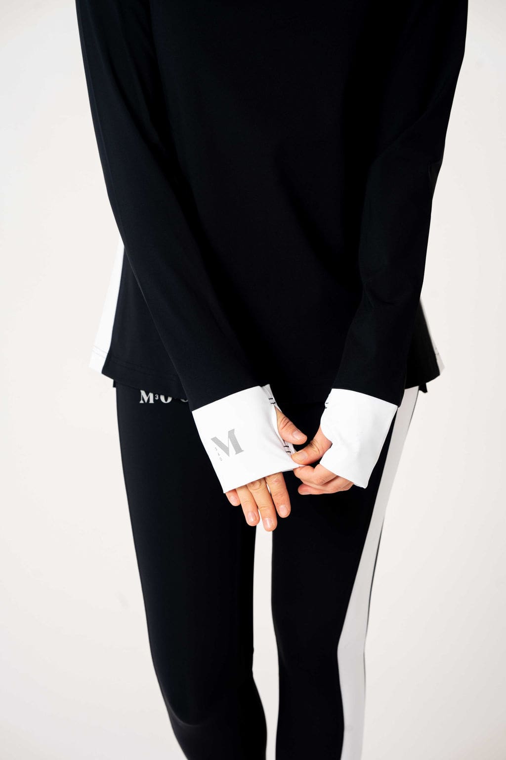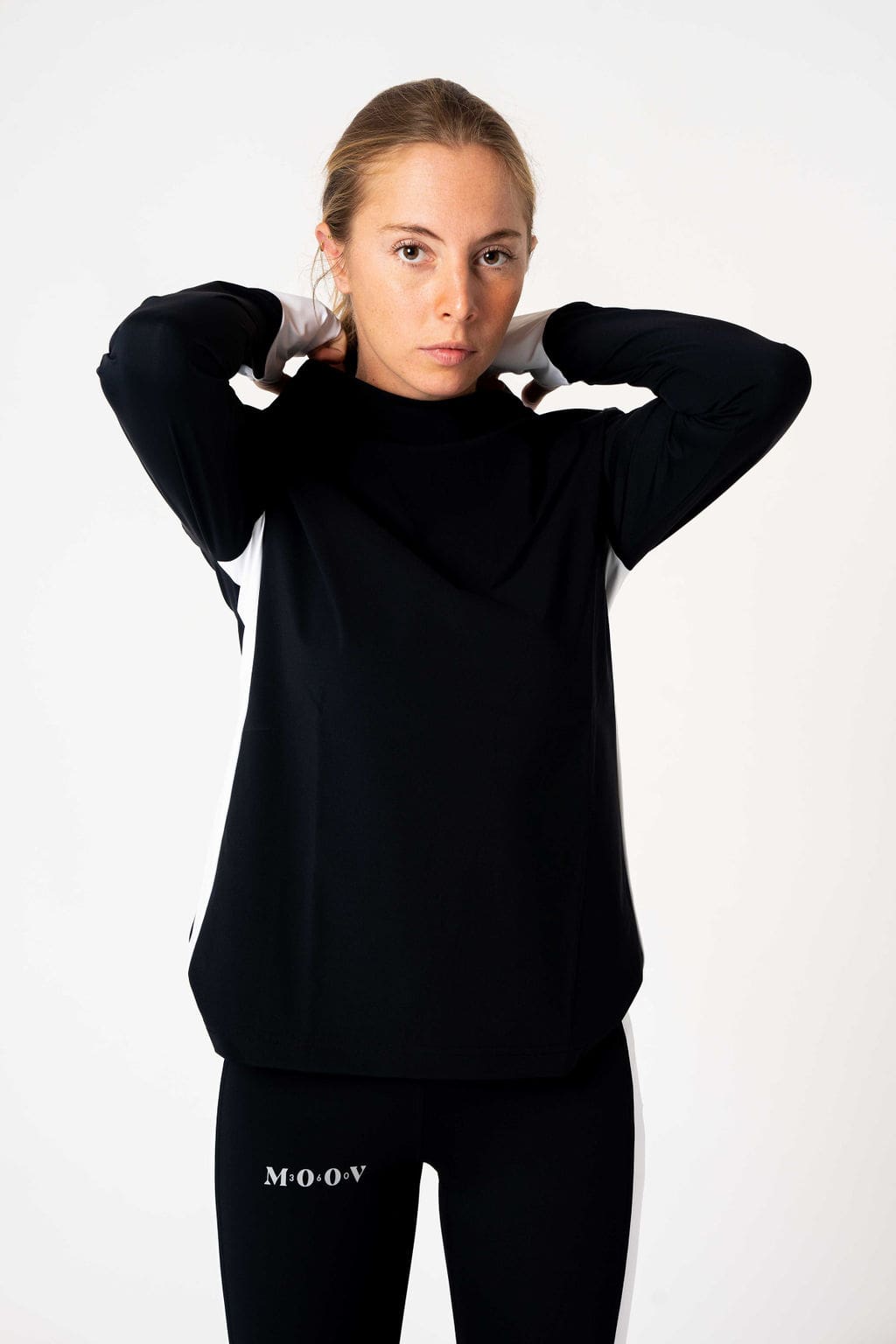 Ce modèle manches longues signature Moov360 se distingue par son design unique, son col montant au style épuré et féminin, et sa coupe, plus longue à l’arrière, qui ne colle pas à la peau, favorisant la respirabilité dans le dos et une liberté de mouvements amples.